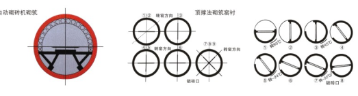 6. 回轉(zhuǎn)窯的施工規(guī)范:四米以上的窯型大多采用自動砌磚機(jī)施工(圖一),檢修時也可以采用鼎撐法,三米五以上大多采用十字鼎撐法施工(圖二),三米五以內(nèi)的窯徑大多采用一次鼎撐法施工