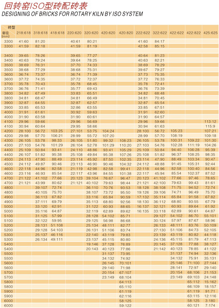回轉窯ISO型磚配磚表