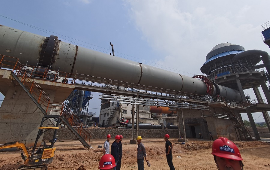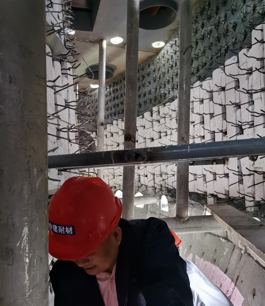 我司工程技術人員在某石灰行業客戶的耐材施工現場進行日常督導檢查。