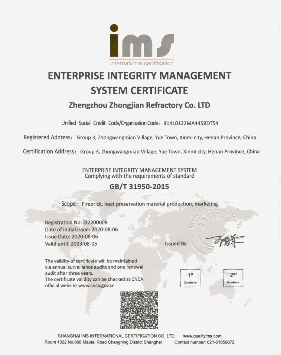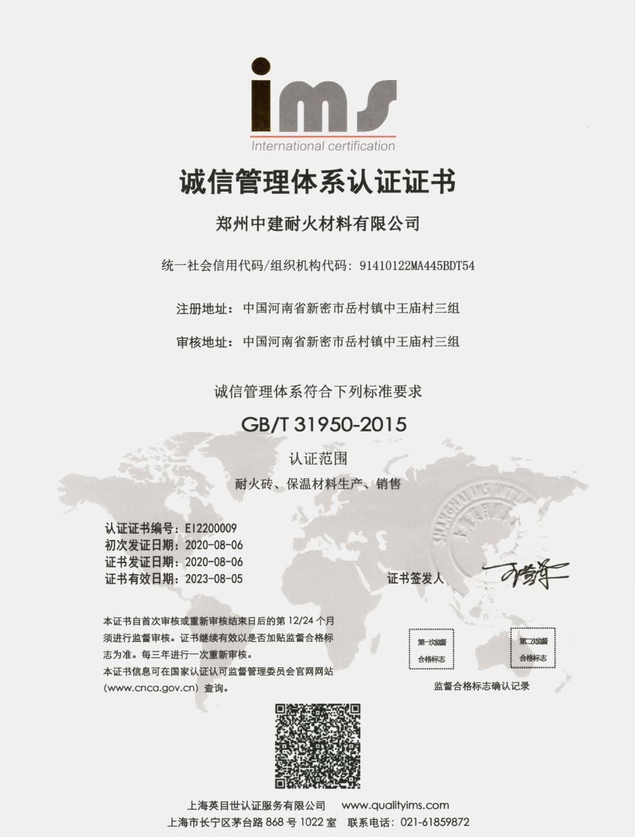 熱烈祝賀我司順利通過誠信管理體系認證并取得證書