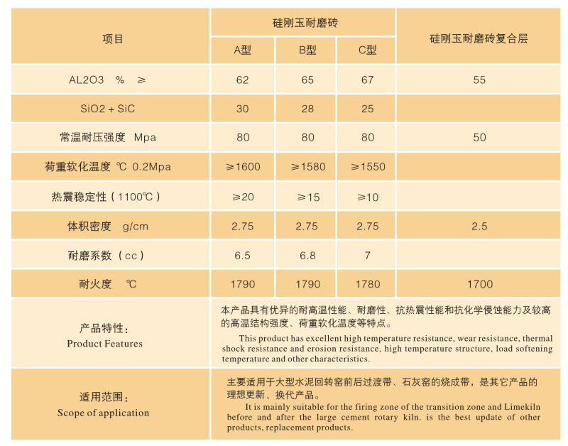 適用范圍:主要適用于大型水泥回轉(zhuǎn)窯前后過(guò)渡帶、石灰窯的燒成帶、是其它產(chǎn)品的理想更新、換代產(chǎn)品。